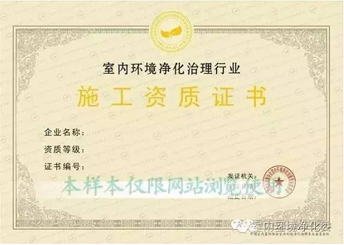 提供室內(nèi)環(huán)境治理服務(wù)的公司需要具有施工資質(zhì)。國內(nèi)承擔(dān)室內(nèi)環(huán)境凈化治理工程的企業(yè)按其注冊資本,管理和技術(shù)人員狀況,以及凈化治理工程業(yè)績等條件申請相應(yīng)資質(zhì)等級,分為甲、乙、丙三級。資質(zhì)由中國室內(nèi)裝飾協(xié)會(huì)室內(nèi)環(huán)境凈化治理專業(yè)委員會(huì)全國統(tǒng)一頒發(fā)